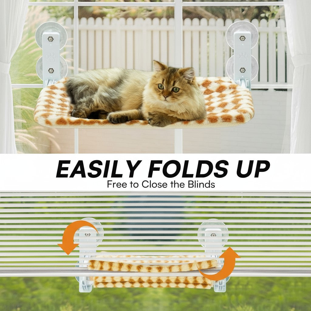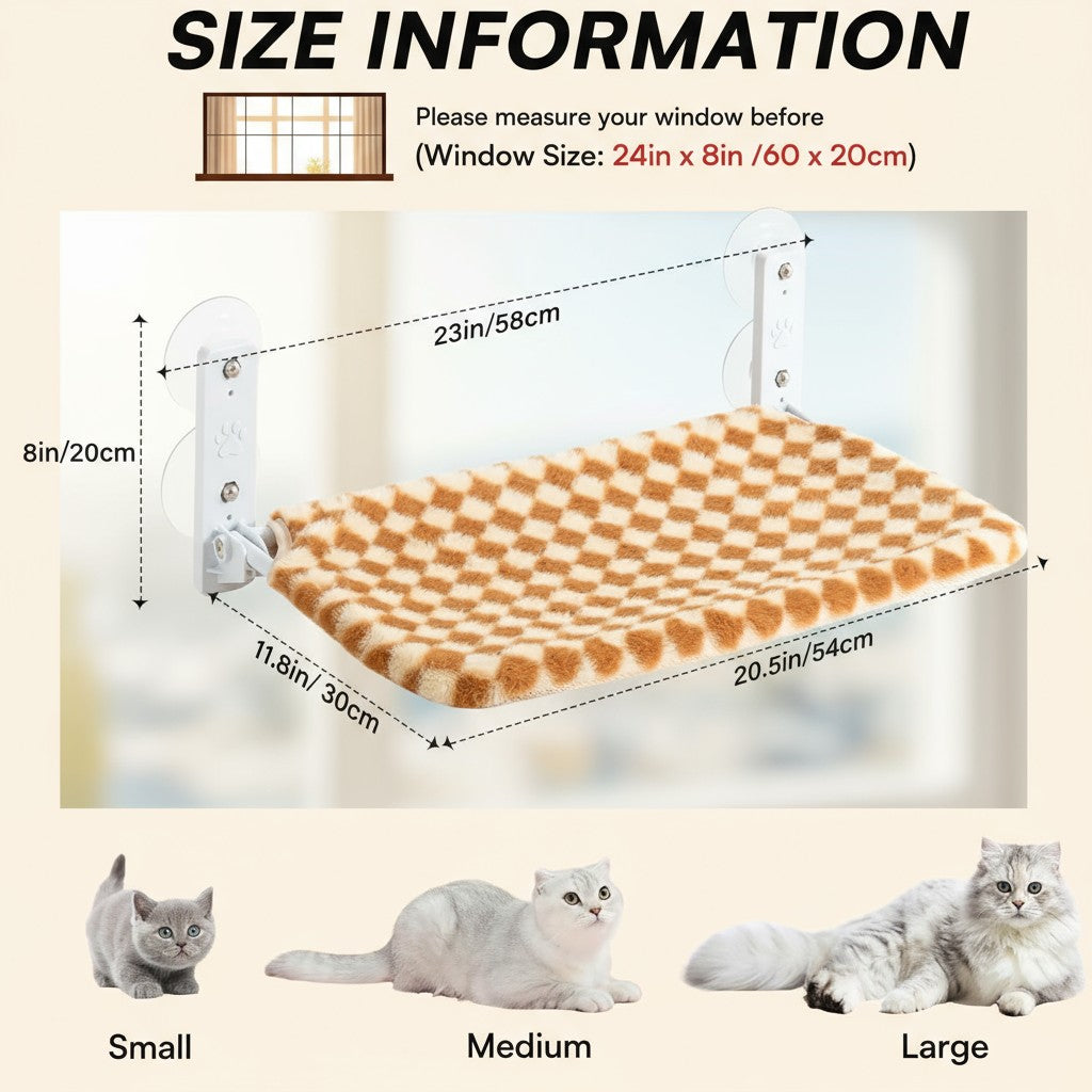 Cat Window Hammock - Steel Frame Perch With Strong Suction Cups For Indoor Cats Brown, Medium