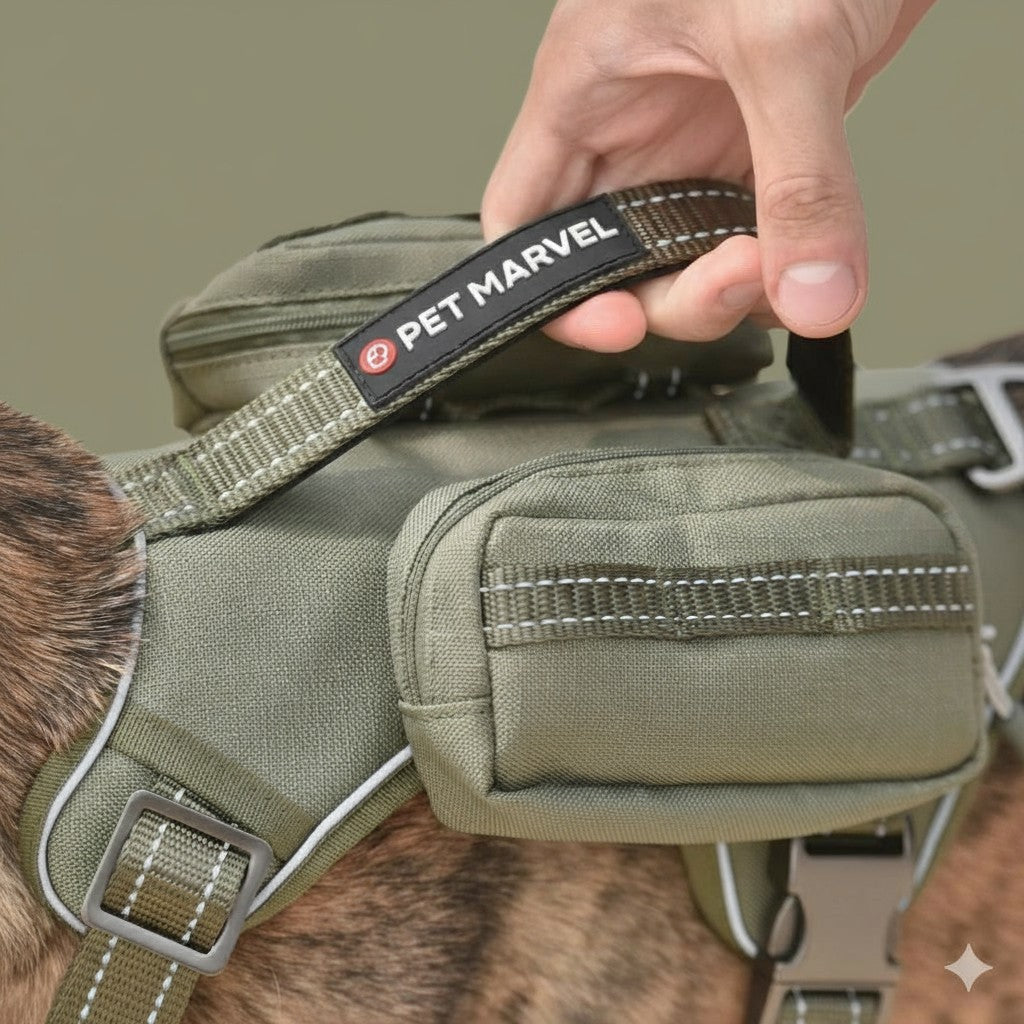 High-Perfomance Tactical Dog Harness With Backpack, No Pull Front Clip & Metal Buckles